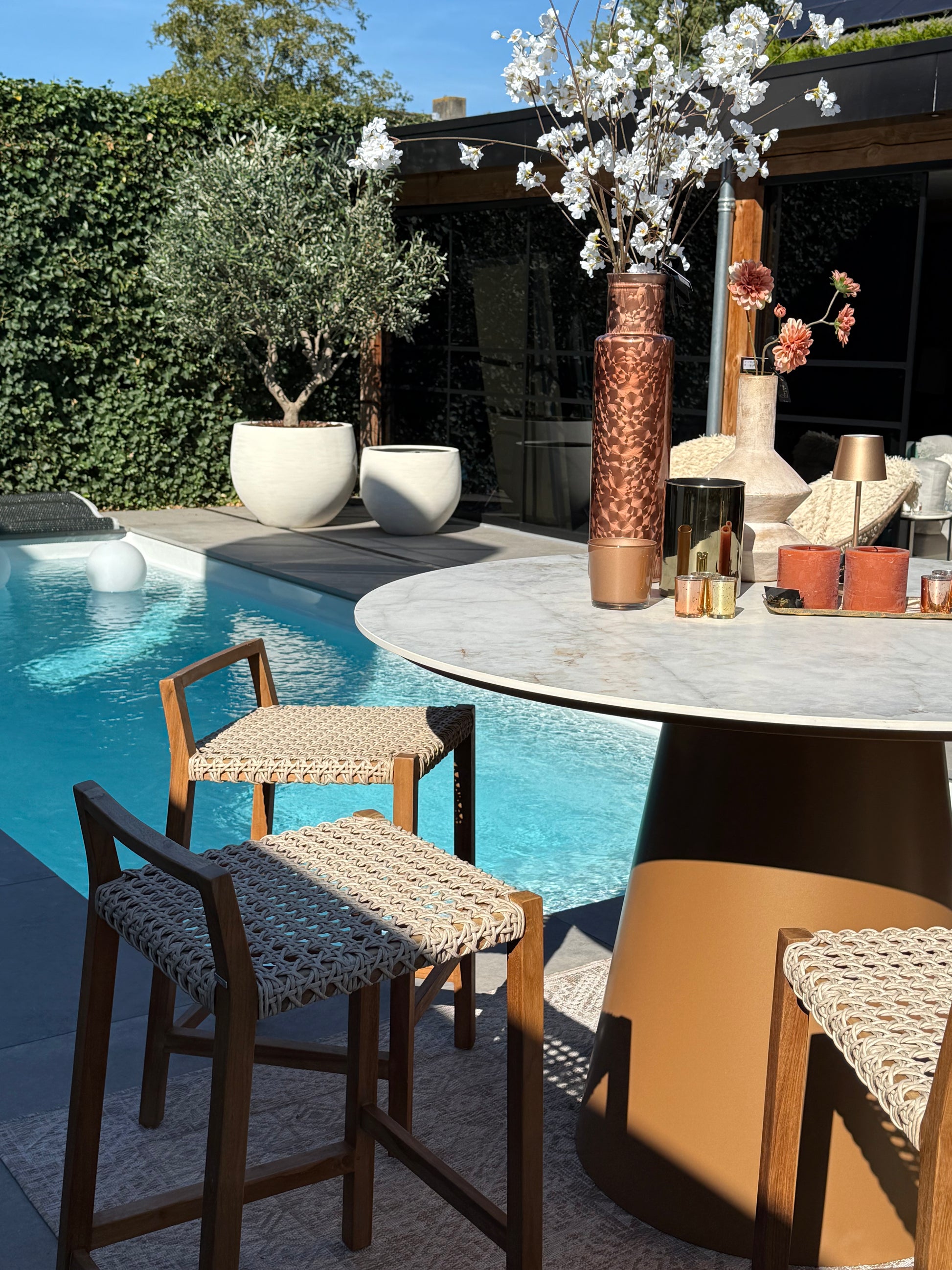Dankzij de duurzame materialen is de tafel geschikt voor zowel binnen als buiten. In de tuin vormt hij het middelpunt van lange zomeravonden en binnen brengt hij diezelfde luxe en sfeer in je interieur. De bartafel is volledig samen te stellen naar wens, vanaf €2900,00. Meerdere formaten en/of kleuren zijn mogelijk. Neem contact op voor de mogelijkheden.