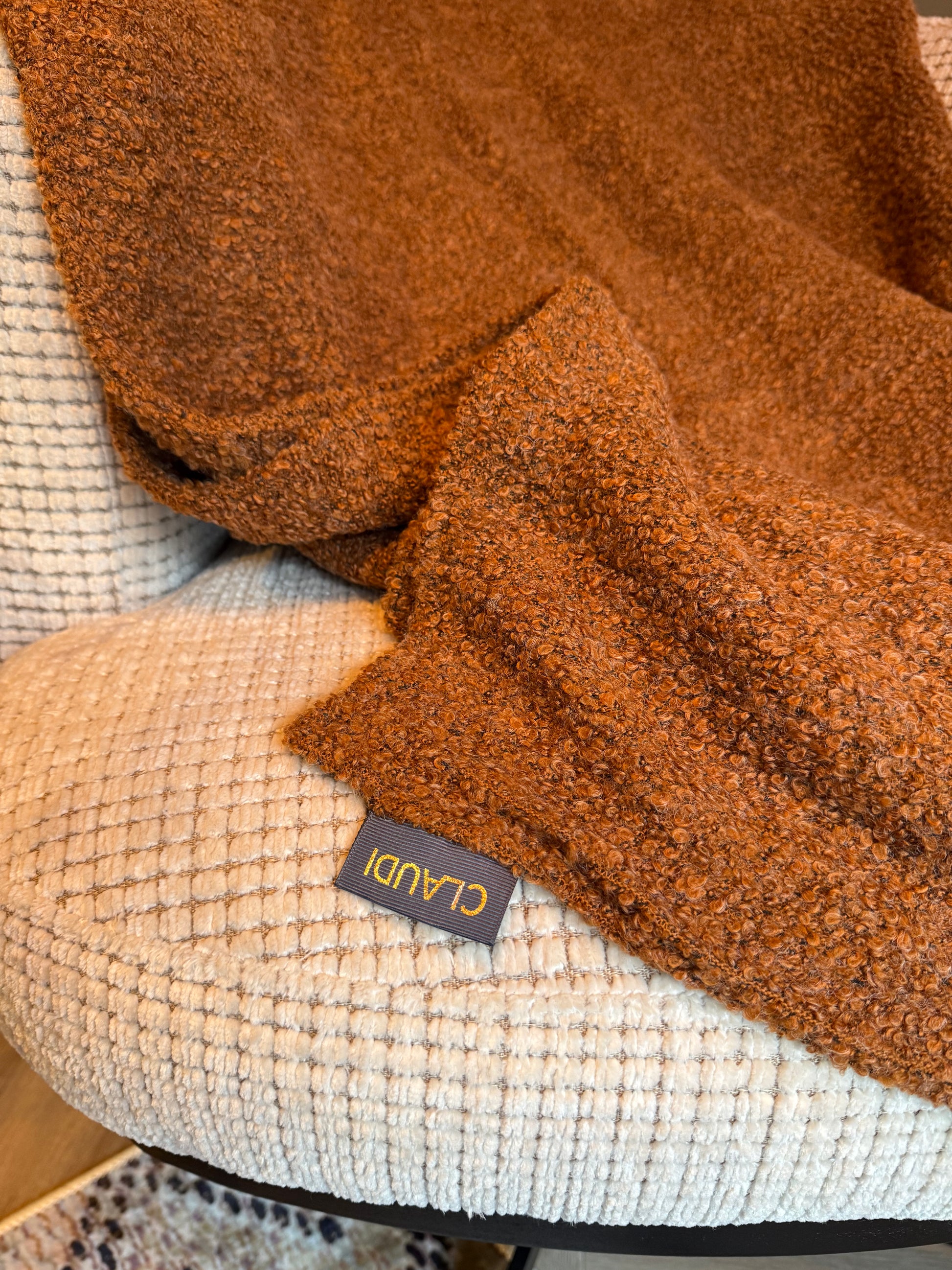 Claudi Plaid: Bonito 140x180 Copper, 100% katoen, wasbaar volgens wasvoorschrift.