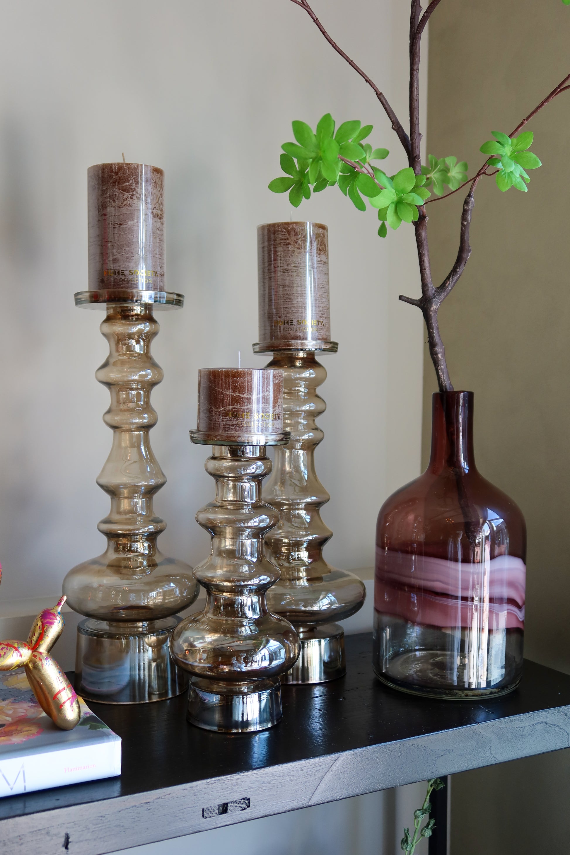 Sfeervolle glazen kandelaar bruin rookglas. Excl. lichtbron. Prijs per maat.