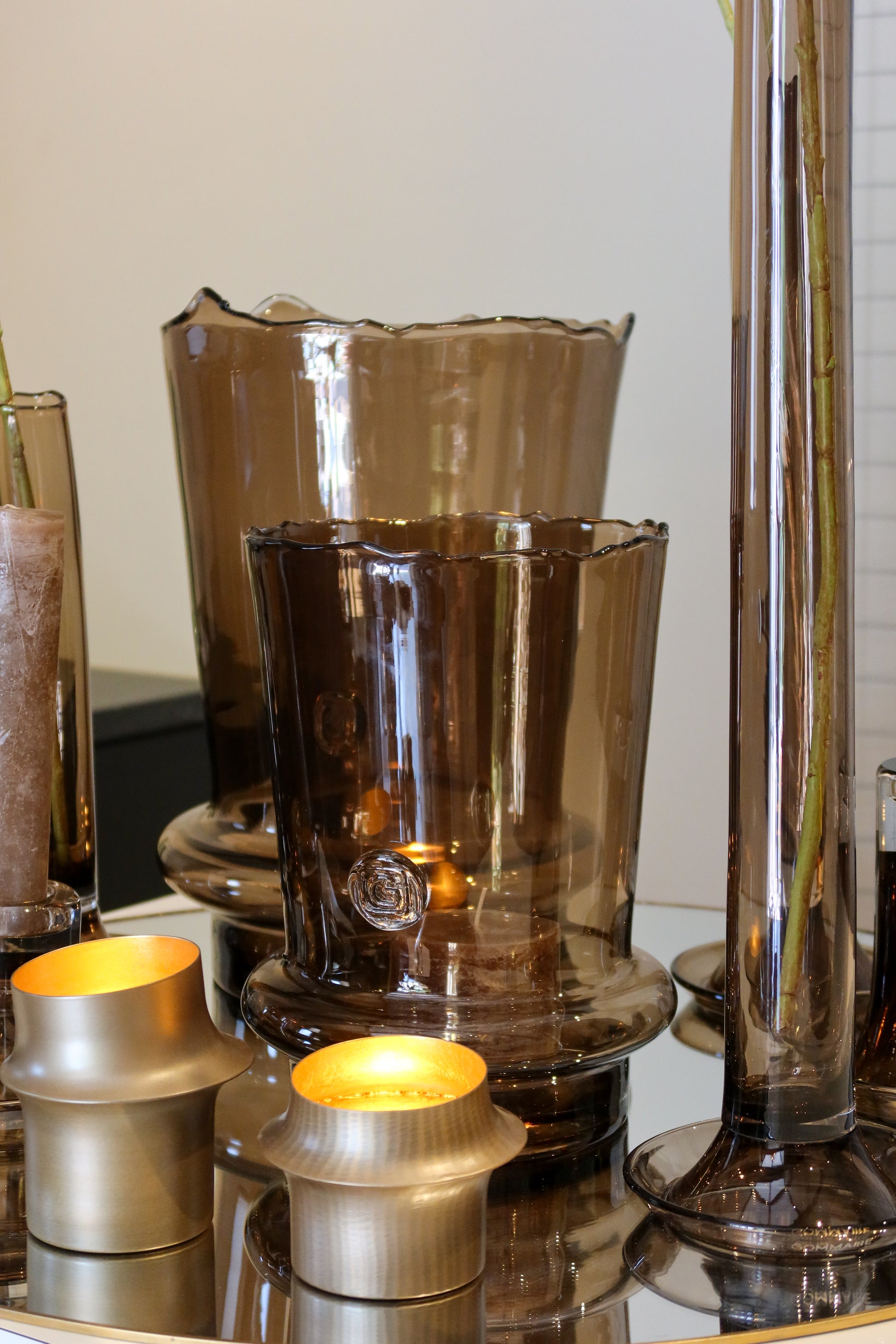 Windlicht XL handgeblazen rookglas 42Hx28,5D