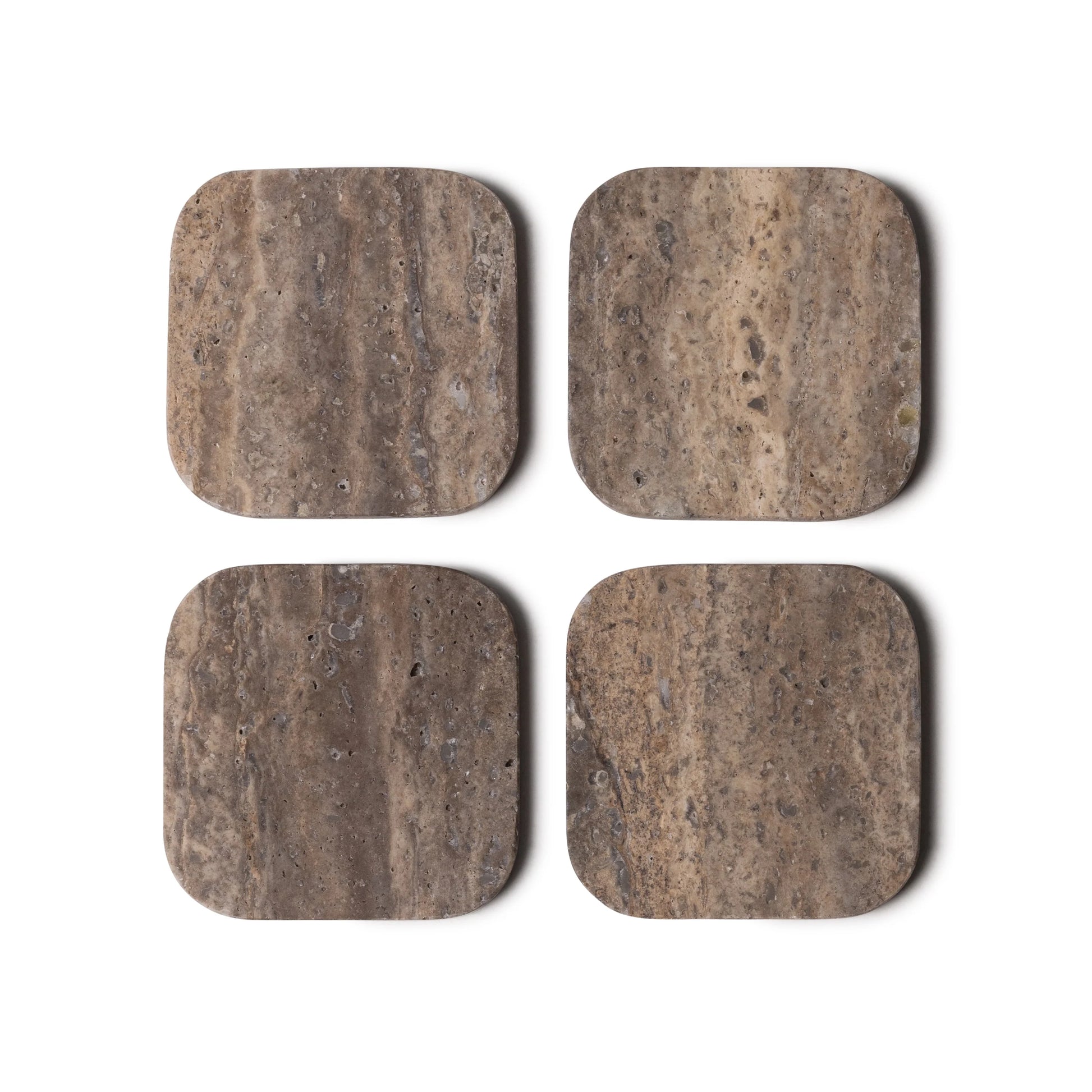 Titanium travertine onderzetter - organisch - set van 4 stuks - 10x10x1cm