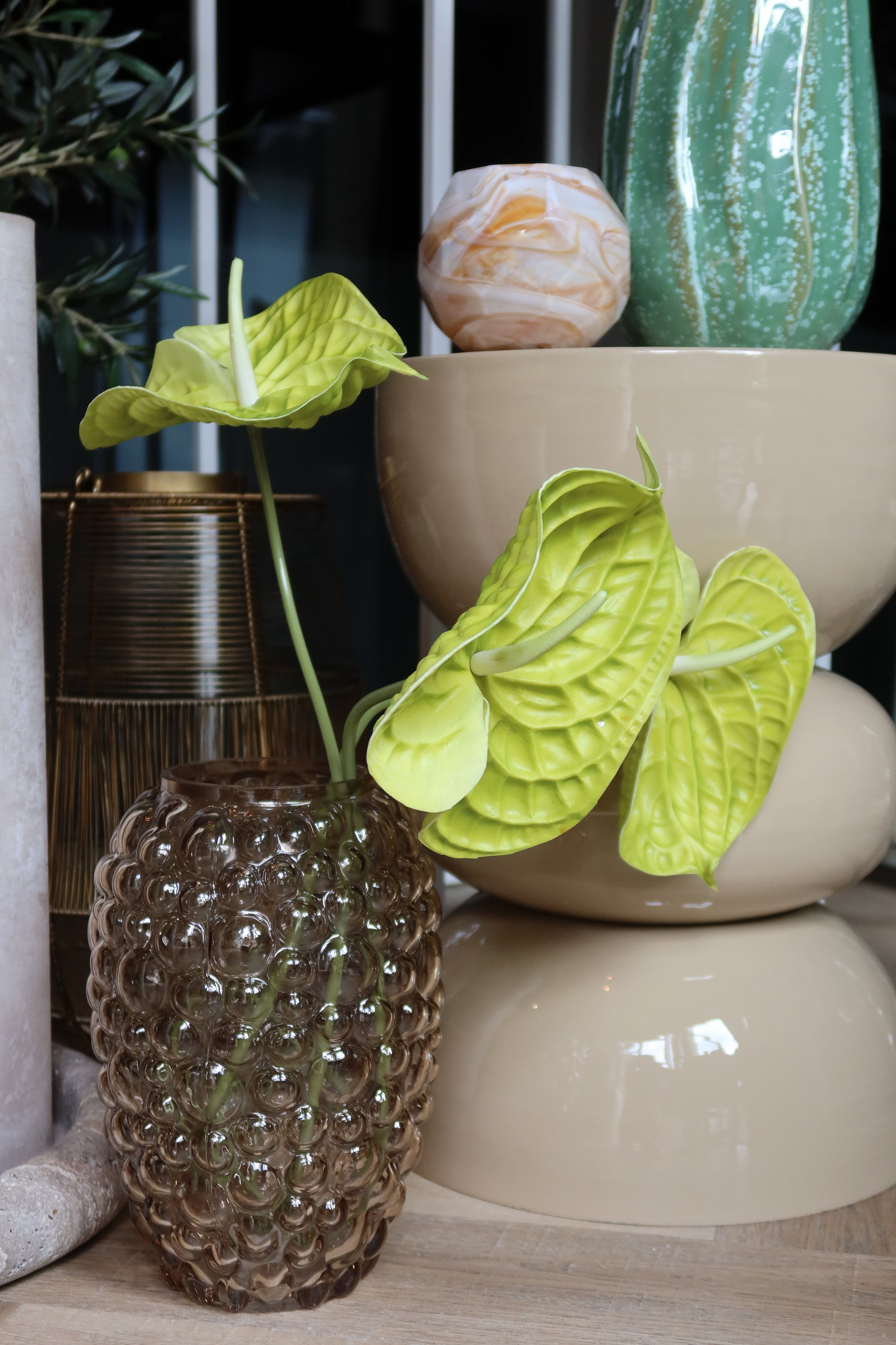 Leuke glas look vaas, met bubbel structuur. Excl. bloemen.
