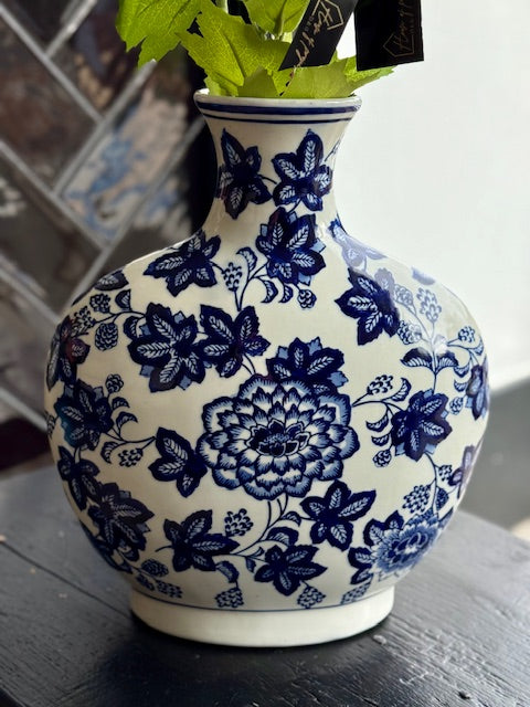 Unieke vaas door zijn vorm. Delfts blauwe look. Excl. bloemen.