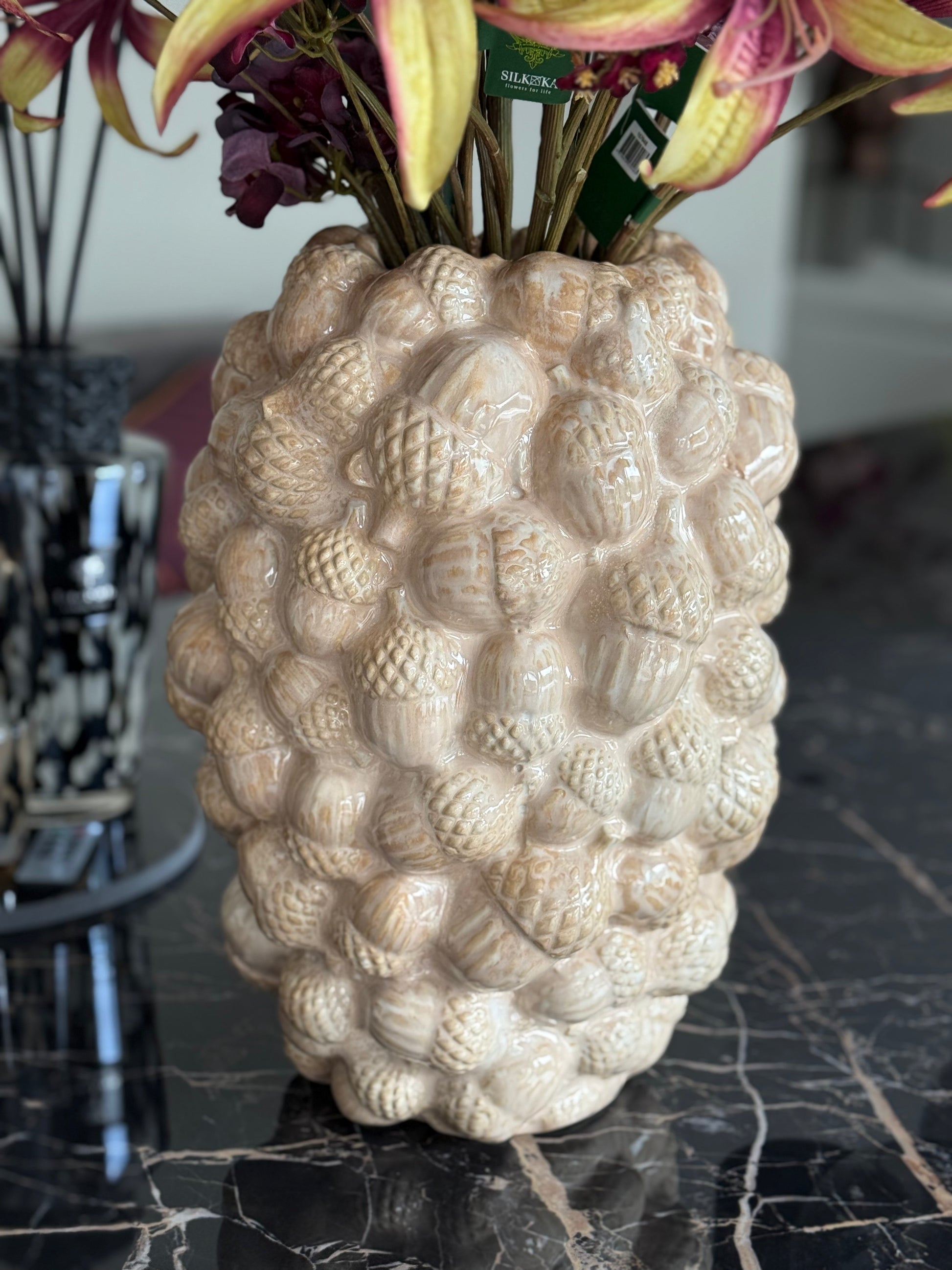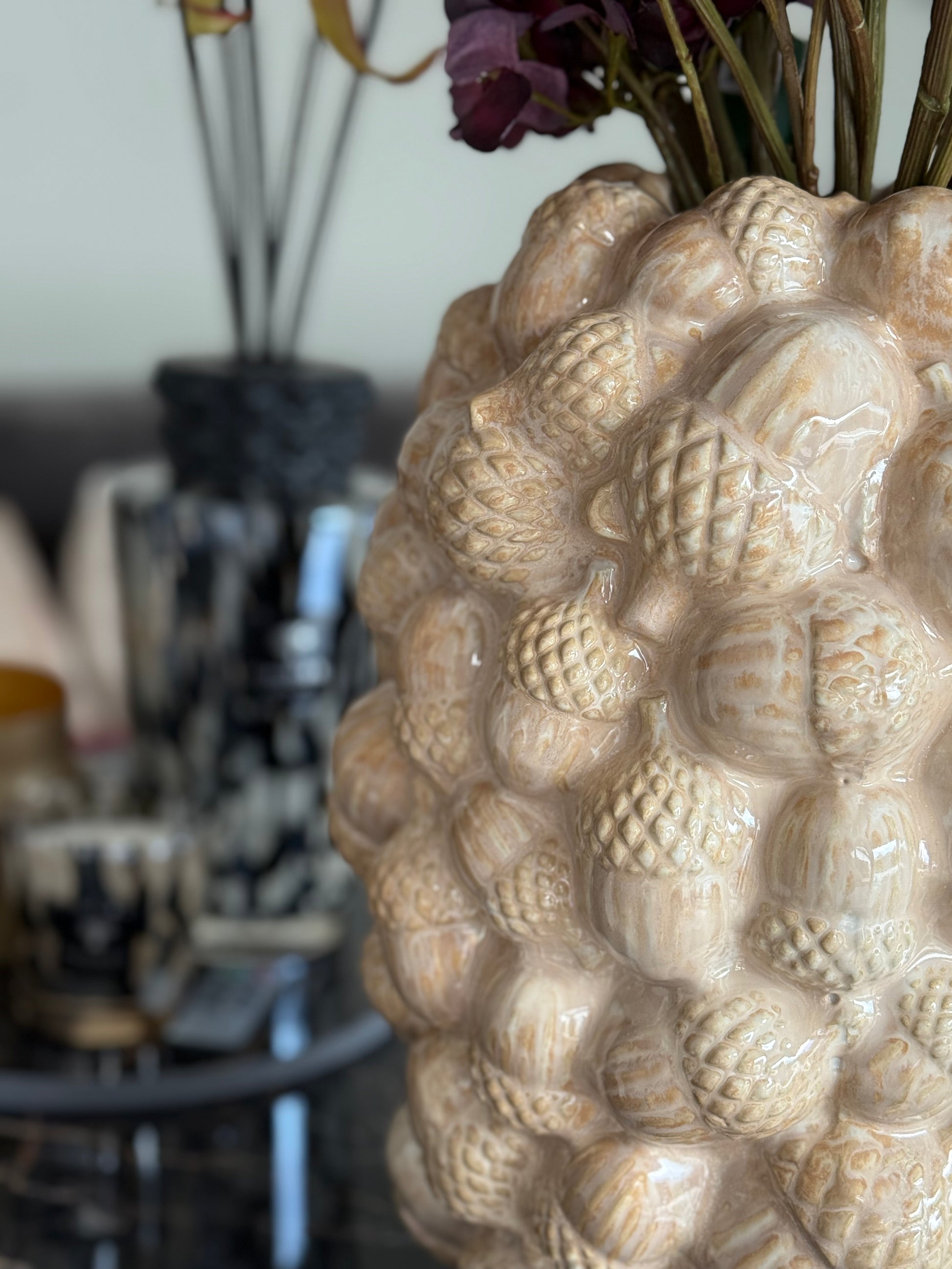 Vaas Eikeltjes Glanzend Keramiek Zandkleur 27x27x38