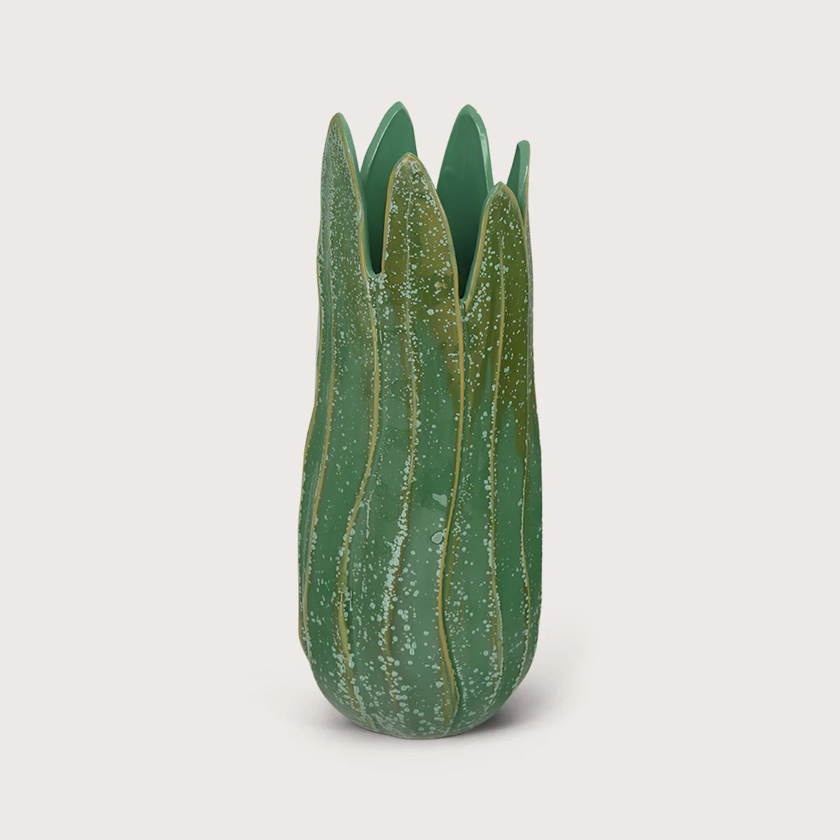 Keramiek is een verfijnd, duurzaam materiaal dat door het bakken van zorgvuldig geselecteerde klei op hoge temperaturen een bijzonder sterke en solide structuur krijgt. Dit materiaal is niet alleen duurzaam en eenvoudig te reinigen, maar geeft potten een karaktervolle, tijdloze uitstraling.