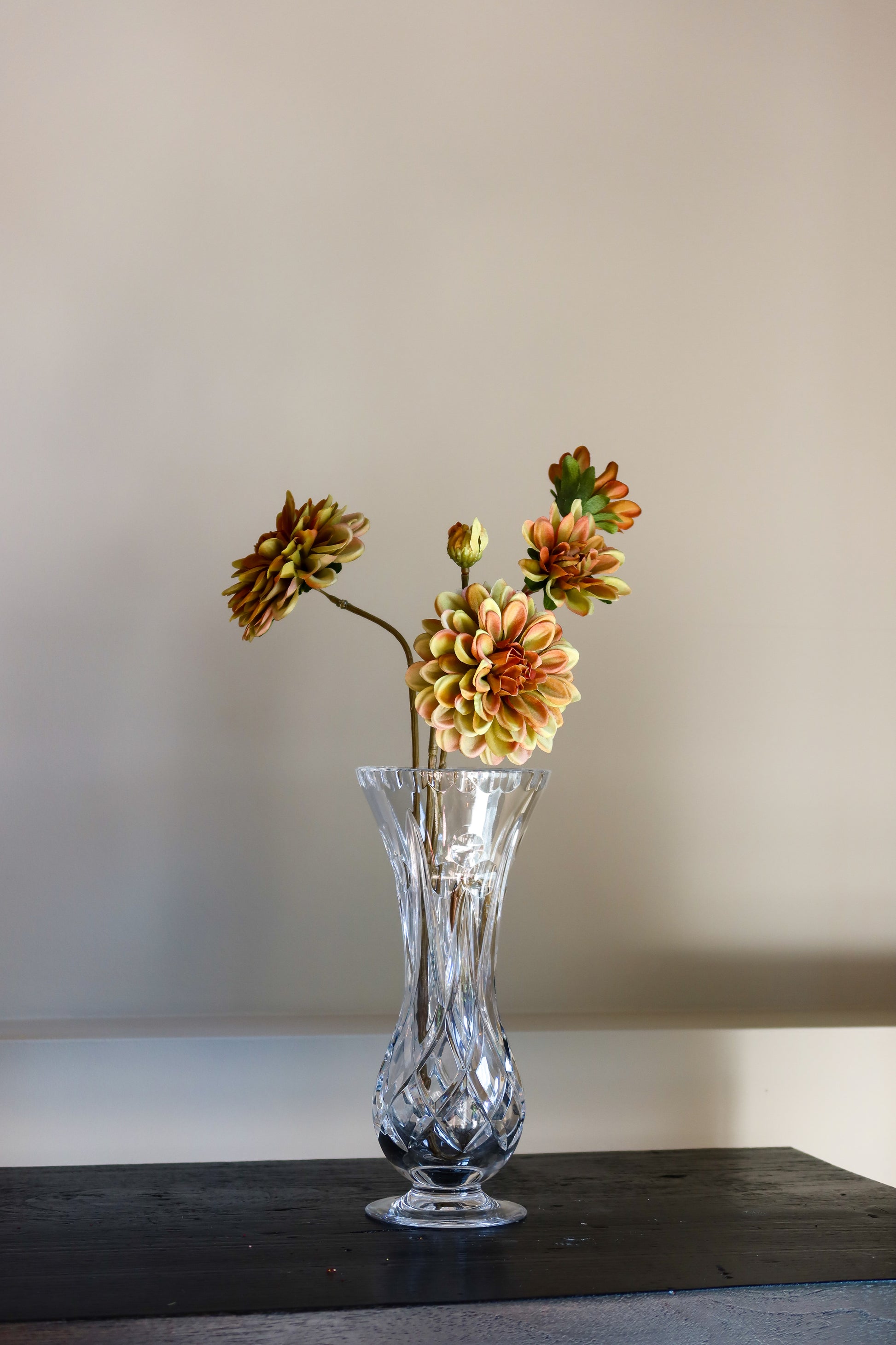 Prachtig vintage look glazen vaasje met geslepen details. Excl. bloem.