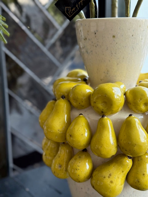 Vaas Peren keramiek 39hx13b beige/groen/geel